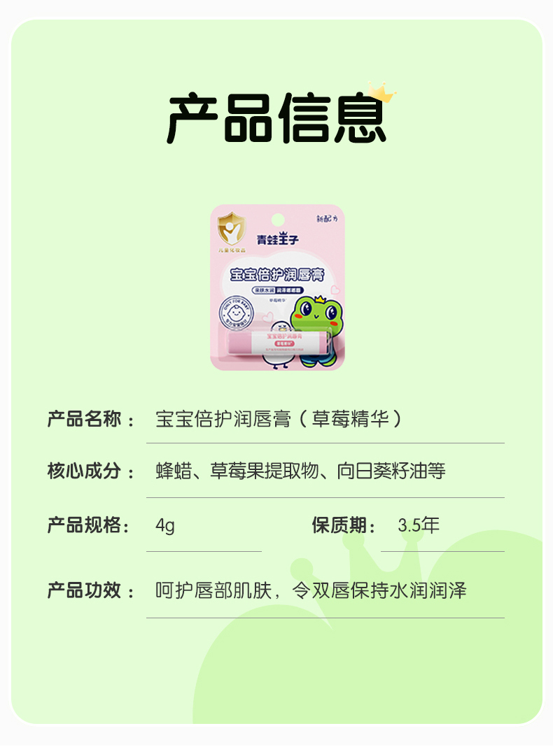 青蛙王子儿童专用润唇膏男女孩保湿补水宝宝滋润防干裂婴儿护唇膏  支持门店配送