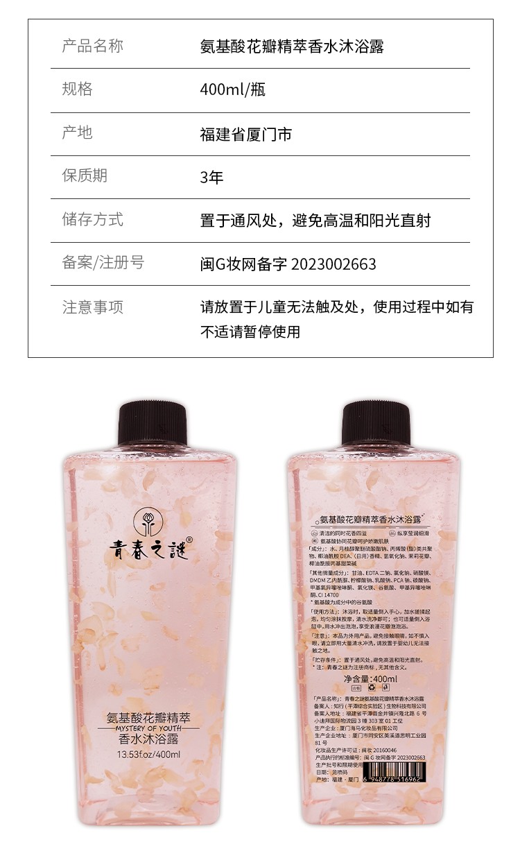 【包邮】青春之謎氨基酸花瓣精萃香薰沐浴露  支持门店配送